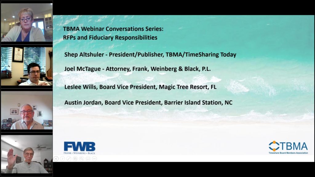 Requests for Proposals (RFPs) are necessary in fulfilling a Board’s fiduciary responsibilities. Additionally, it is essential to consult with legal counsel when preparing RFPs. On a recent TBMA webinar, panelists Joel McTague, Attorney, Frank, Weinberg & Black, P.L.; Leslee Wills, Board Vice President, Magic Tree Resort, FL; and Austin Jordan, Board Vice President, Barrier Island […]